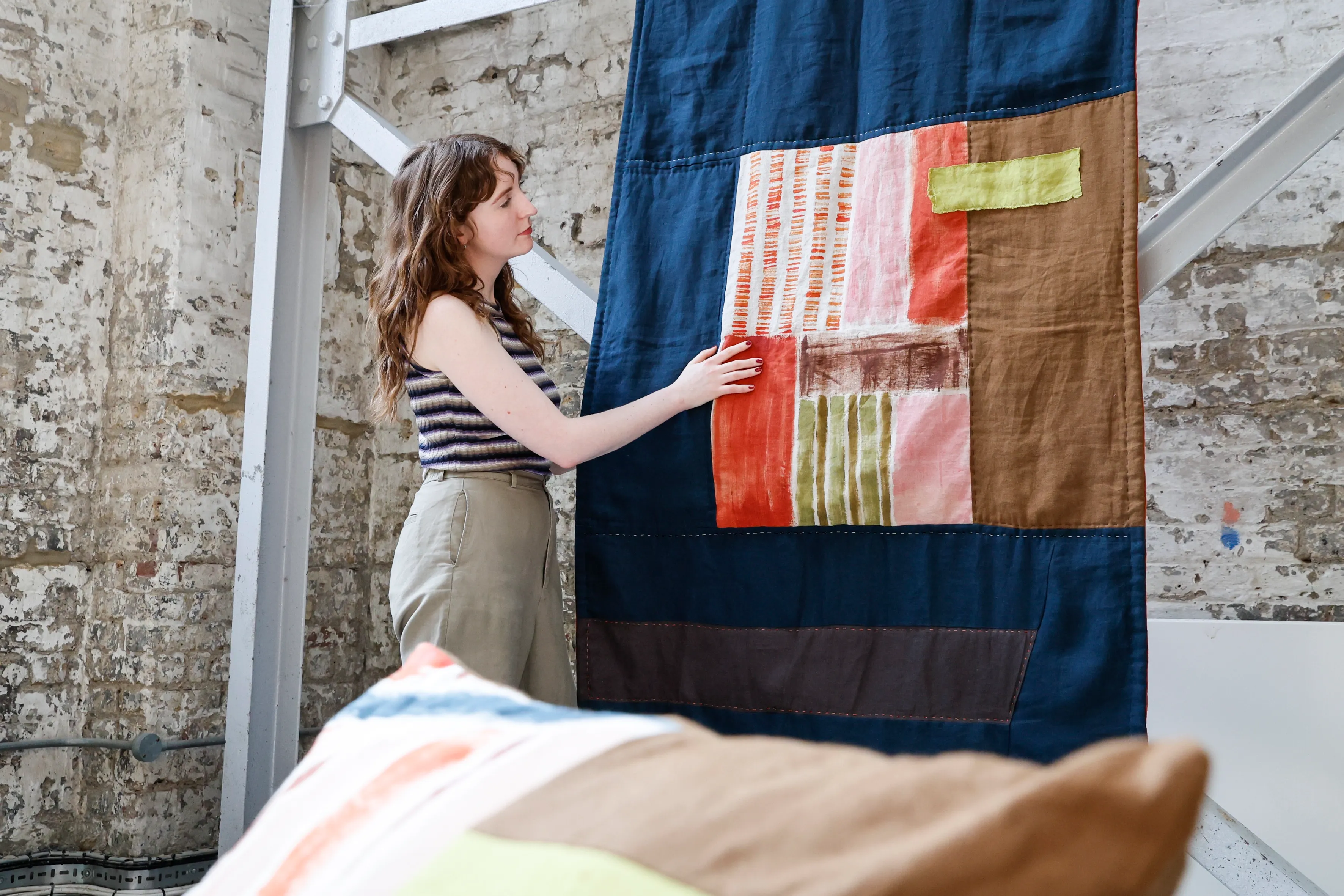 Almha is committed to sustainability and craft in her practice as an artist and maker. The materials in this exhibition are Irish or European Linen and secondhand fabric. Each piece is carefully crafted by her in her studio - she prints, stitches and constructs every piece with delicate skill and care. The pieces are meant to be enjoyed at home or experienced in a gallery space.