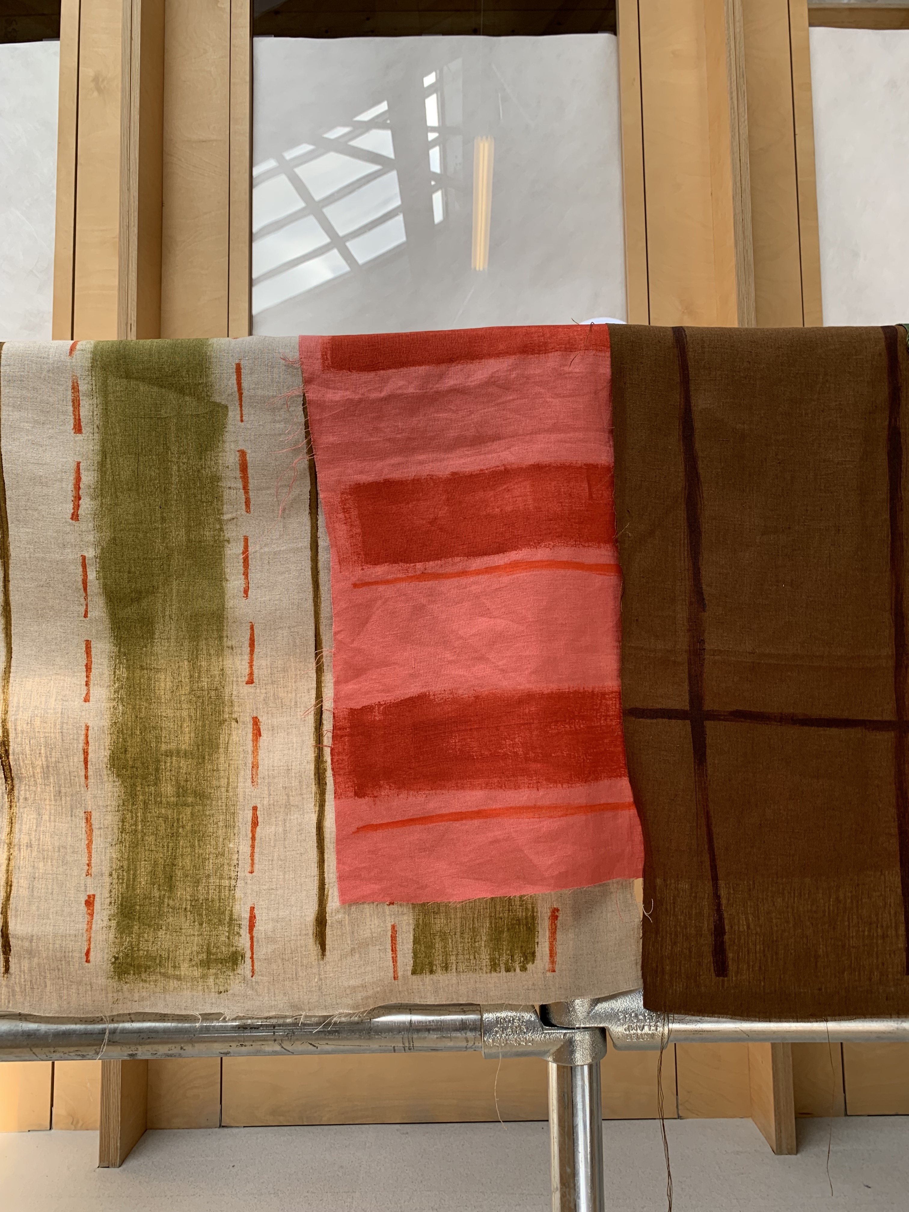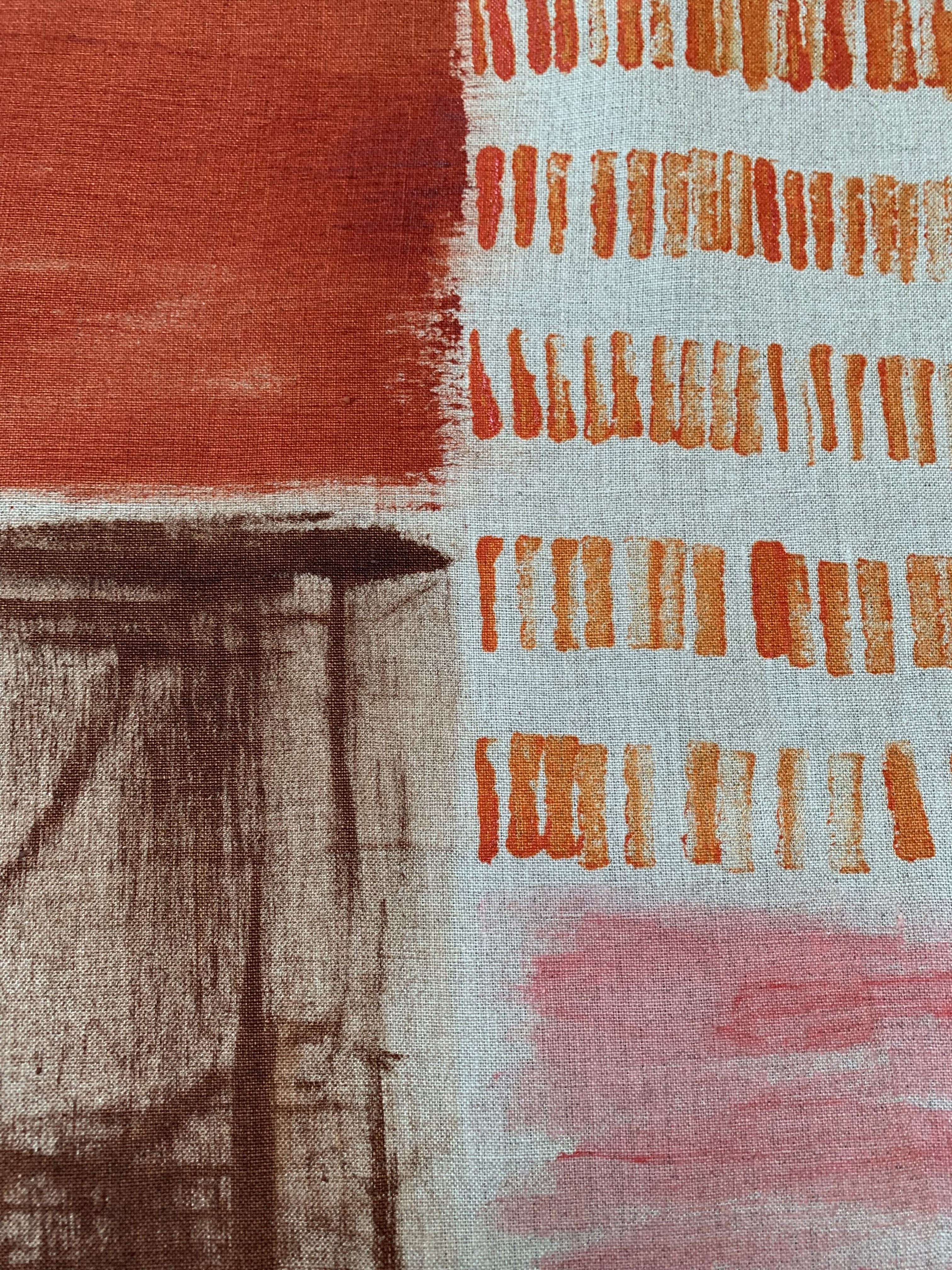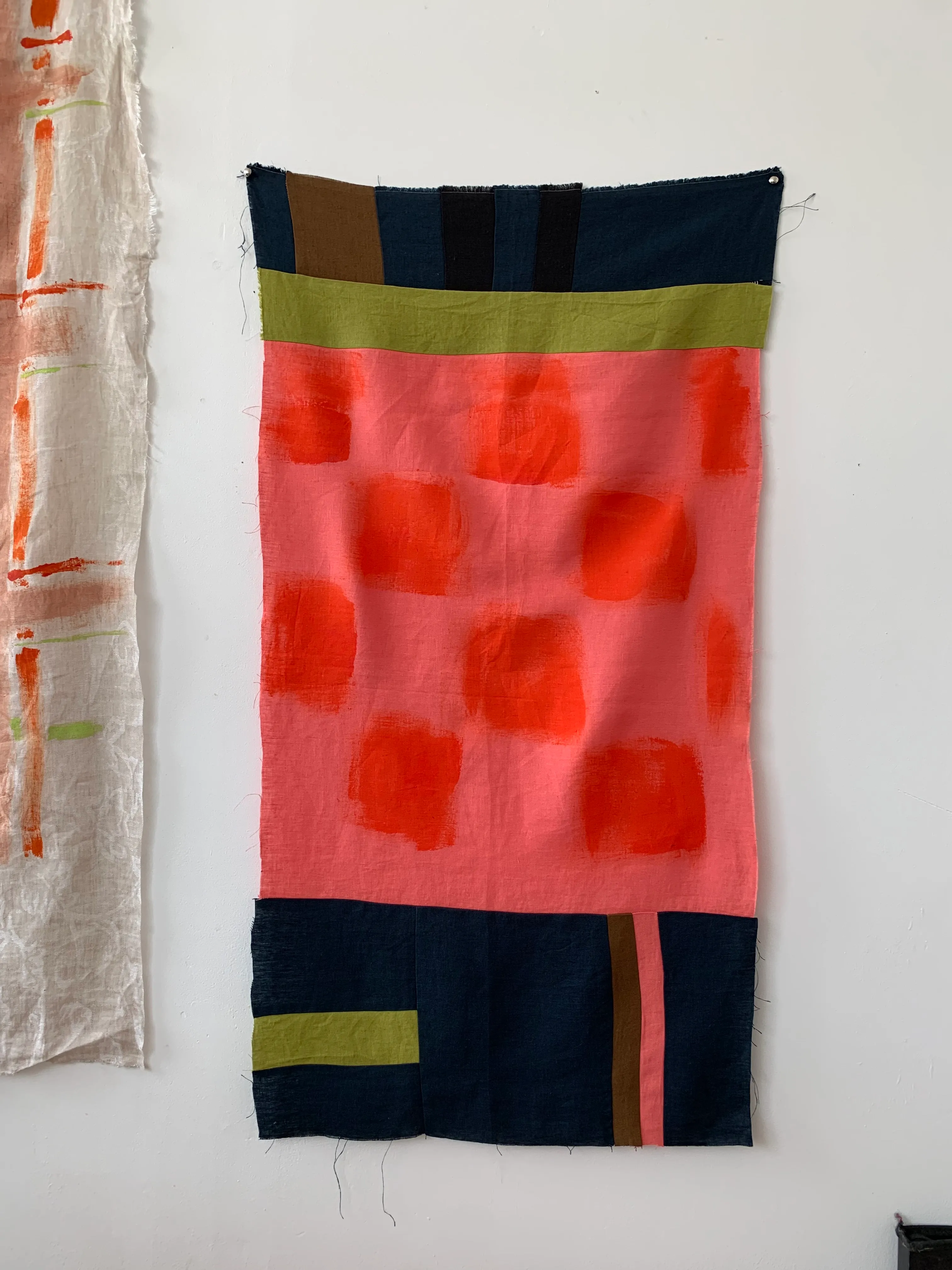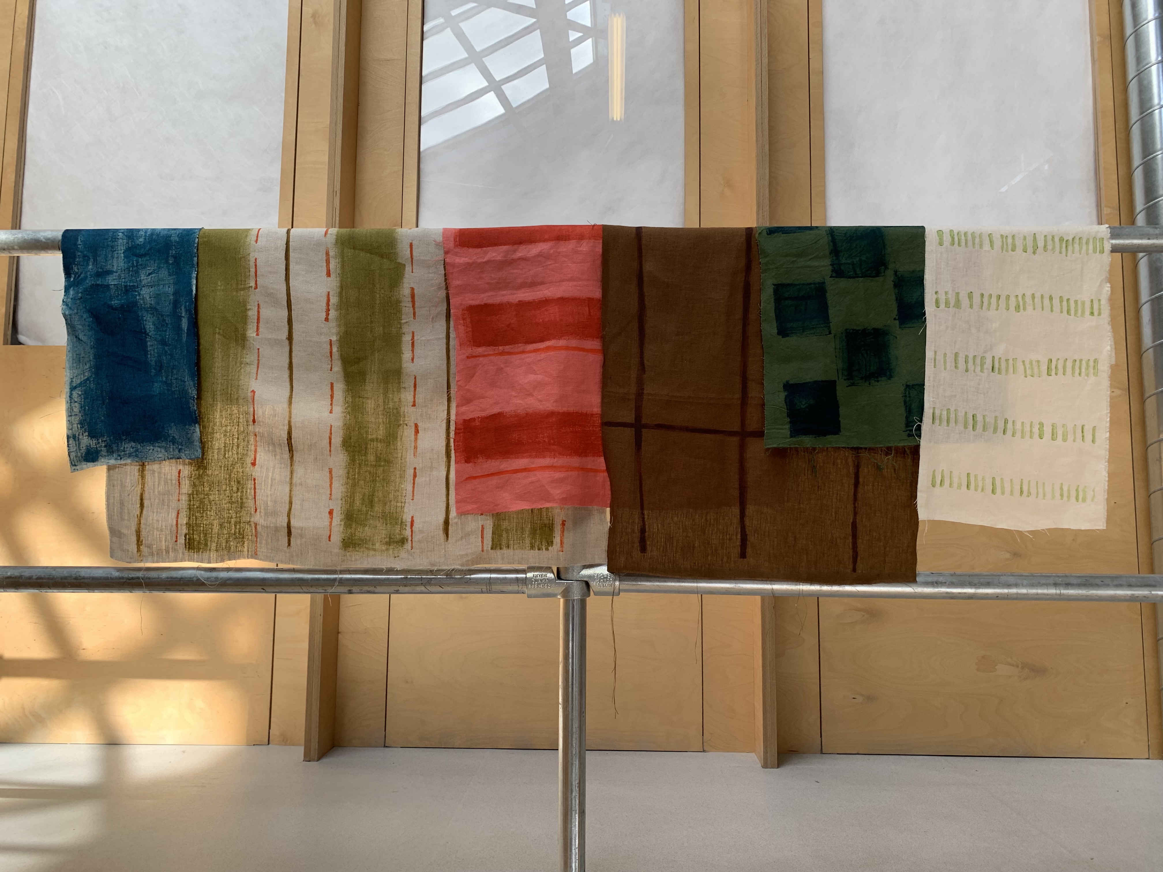 ‘A Warp'. Wallhanging (Close up). 100% Linen. Hand printed & Machine Patchwork. 2022.'A Warp'. Wallhanging. 100% Linen. Hand printed. 2022.'An Bhealach'. Wallhanging (Close up). 100% Linen. Hand Printed & Patchwork. 2022.'An Bhealach'. Wallhanging. 100% Linen. Hand Printed & Patchwork. 2022.'Inné' and 'Anois' Cushions with 'Siar' Quilt' 100% Linen. 2023.'Making Process' Exhibition at Craft Central, 2023. Installation view.'Making Process' Exhibition at Craft Central, 2023. Installation view.'Making Process' Exhibition at Craft Central, 2023.'Mamó' project - Sculptures. Found wood, cotton, linen, rope. Hand printed and stitched. 2021.'Spailp' and 'Plás' Cushions. 100% Linen. Hand Printed. 2023.‘Arís is Arís’ Wallhanging. 100% Linen. Hand printed. 2023.Printing Work in Progress. 100% Linen. Hand printed. 2023.Printing Work in Progress. 100% Linen. Hand printed. 2023.Printing Work in Progress. 100% Linen. Hand printed. 2023.Printing Work in Progress. All on 100% Linen. Hand printed. 2023.Printing Work in Progress. All on 100% Linen. Hand printed. 2023.Printing Work in Progress. All on 100% Linen. Hand printed. 2023.Printing Work in Progress. All on 100% Linen. Hand printed. 2023.