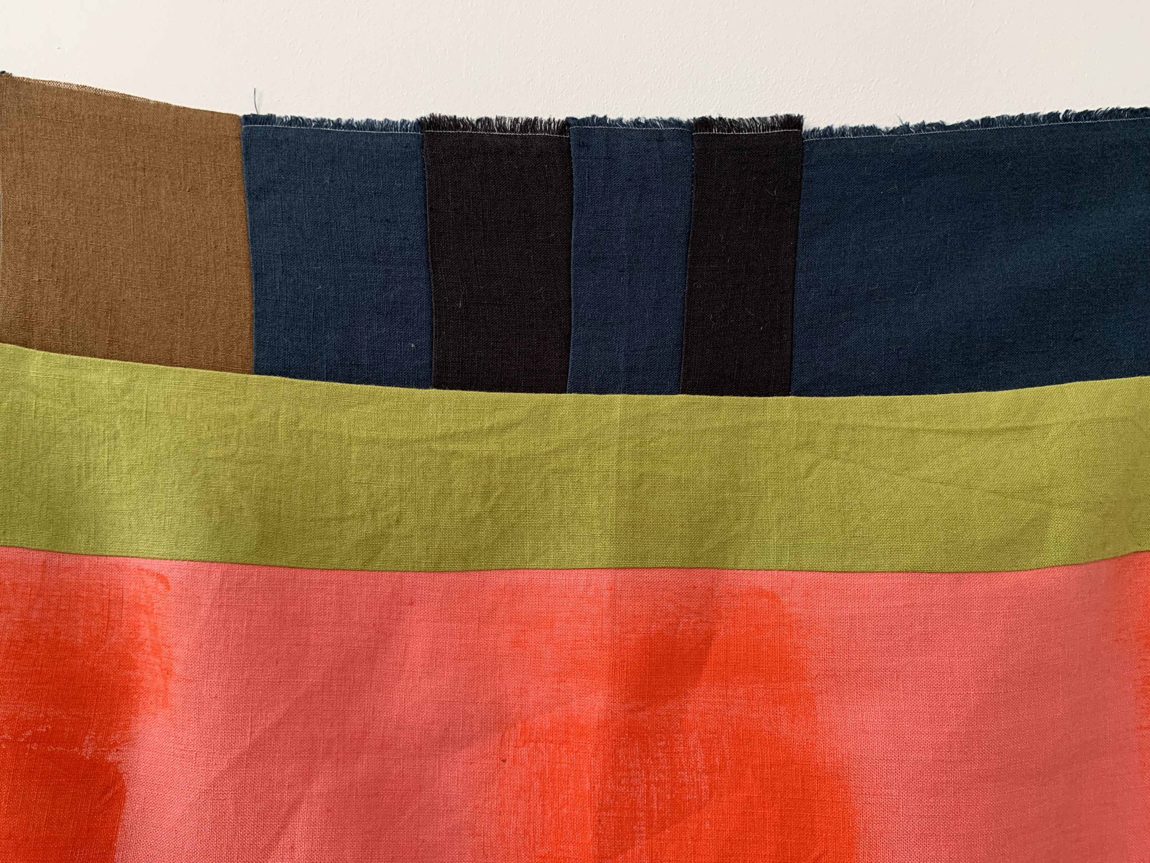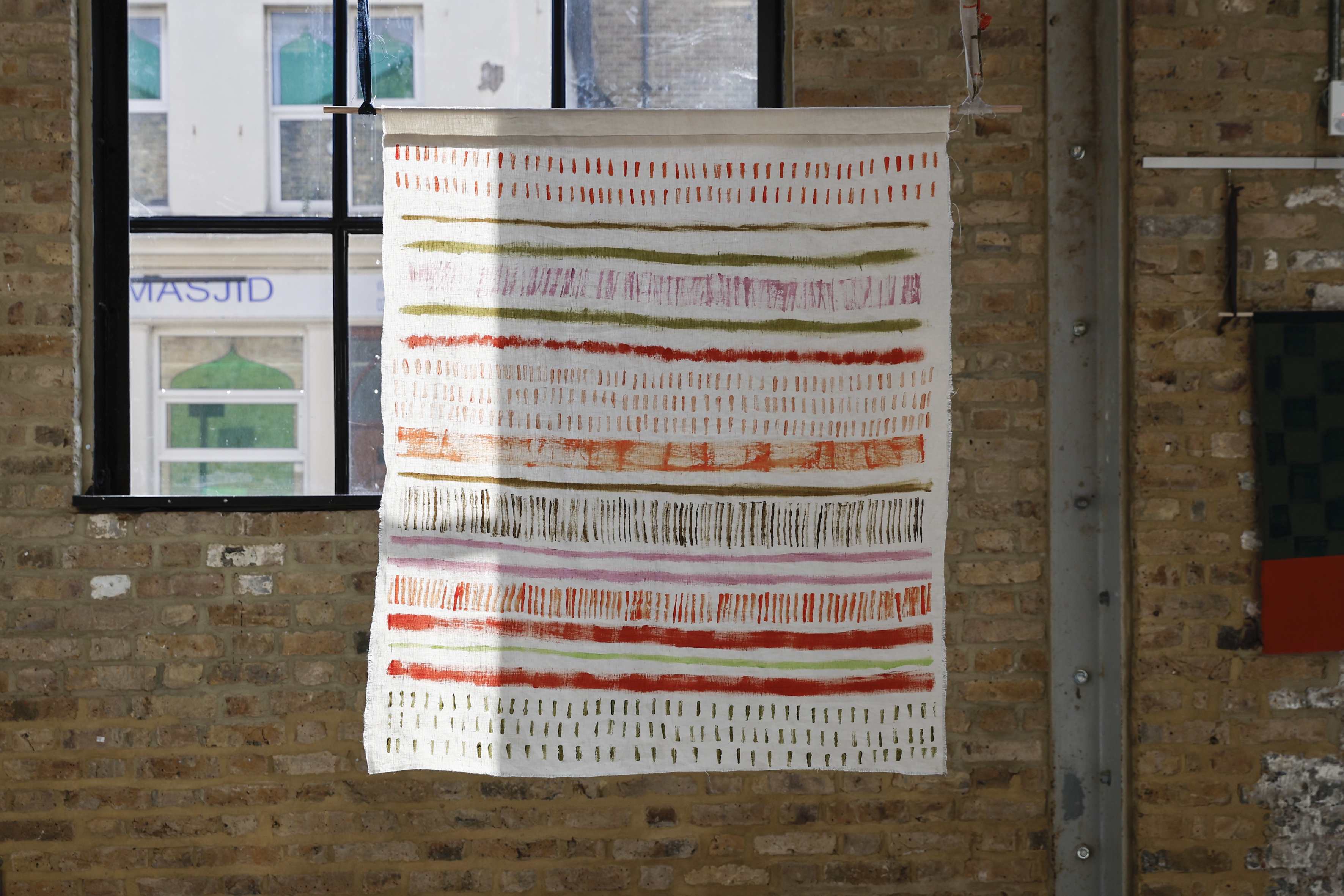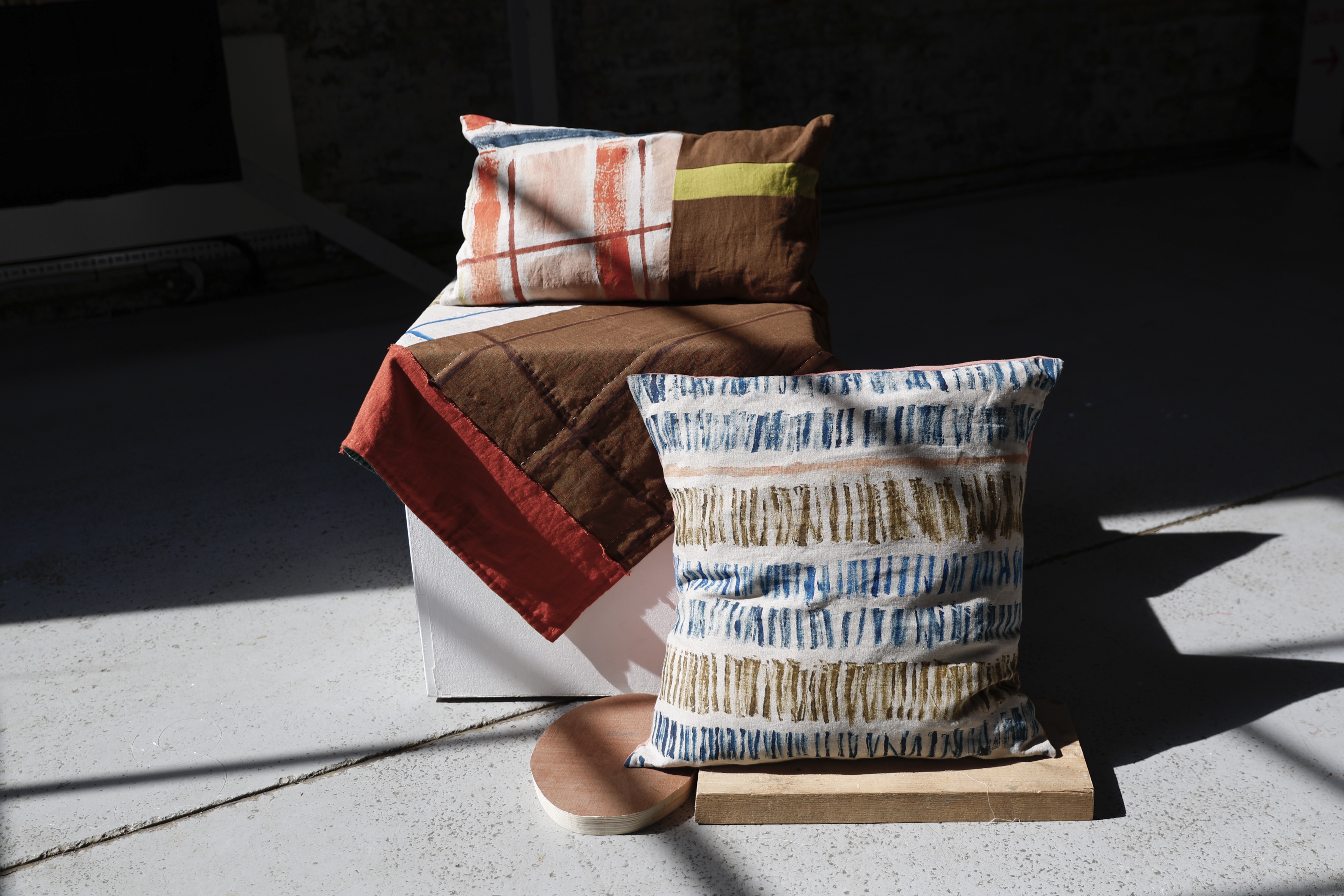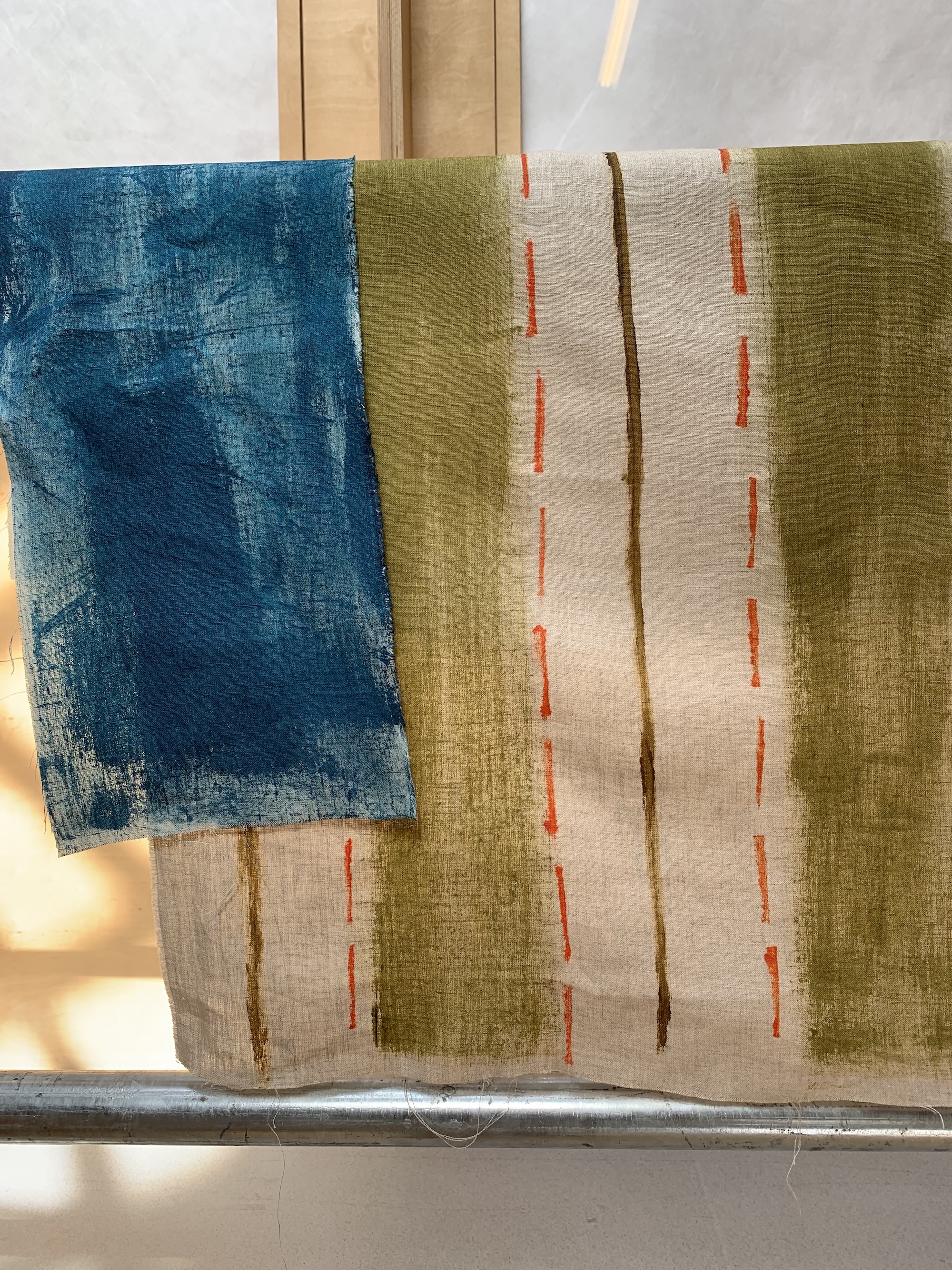 ‘A Warp'. Wallhanging (Close up). 100% Linen. Hand printed & Machine Patchwork. 2022.'A Warp'. Wallhanging. 100% Linen. Hand printed. 2022.'An Bhealach'. Wallhanging (Close up). 100% Linen. Hand Printed & Patchwork. 2022.'An Bhealach'. Wallhanging. 100% Linen. Hand Printed & Patchwork. 2022.'Inné' and 'Anois' Cushions with 'Siar' Quilt' 100% Linen. 2023.'Making Process' Exhibition at Craft Central, 2023. Installation view.'Making Process' Exhibition at Craft Central, 2023. Installation view.'Making Process' Exhibition at Craft Central, 2023.'Mamó' project - Sculptures. Found wood, cotton, linen, rope. Hand printed and stitched. 2021.'Spailp' and 'Plás' Cushions. 100% Linen. Hand Printed. 2023.‘Arís is Arís’ Wallhanging. 100% Linen. Hand printed. 2023.Printing Work in Progress. 100% Linen. Hand printed. 2023.Printing Work in Progress. 100% Linen. Hand printed. 2023.Printing Work in Progress. 100% Linen. Hand printed. 2023.Printing Work in Progress. All on 100% Linen. Hand printed. 2023.Printing Work in Progress. All on 100% Linen. Hand printed. 2023.Printing Work in Progress. All on 100% Linen. Hand printed. 2023.Printing Work in Progress. All on 100% Linen. Hand printed. 2023.